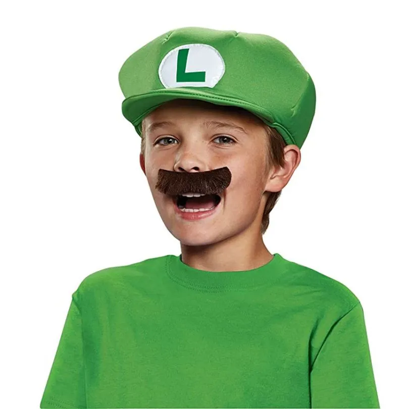 The perfect accessory to complete any DIY Luigi costumes you may have in the mix. This green hat and moustache will have you jumping on shells and winning the Grand Prix in no time.
