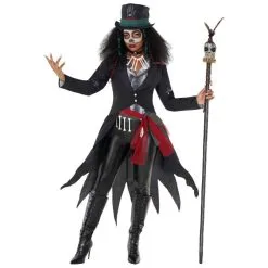 Get your Voodoo on in style with the women’s spectacular Voodoo priestess costume this Halloween. Playing on the spooky ideas of Voodoo often seen in Hollywood movies, this costume is bound to be a head turner at any fancy dress occasion. Baron Samedi? More like Baron Samedi try to find a better costume than this out there! Now go that Voodoo, that you do, so well!